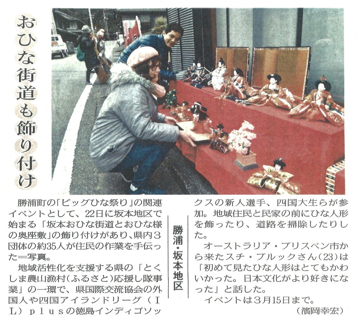 公開日 2020年02月13日 図書館でスクラップしている勝浦町に関する新聞記事です。 可能な限り勝浦町に関する情報の掲載に努めていますが、掲載漏れの場合もありますのでご了承ください。 お問い合わせ 所属 図書館TEL:0885-42-2300E-Mail:tosyokan@town.katsuura.i-tokushima.jp