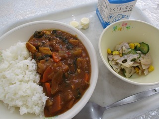 今日は大根、しいたけ、ほうれん草と徳島県産の冬野菜たっぷりカレーと、